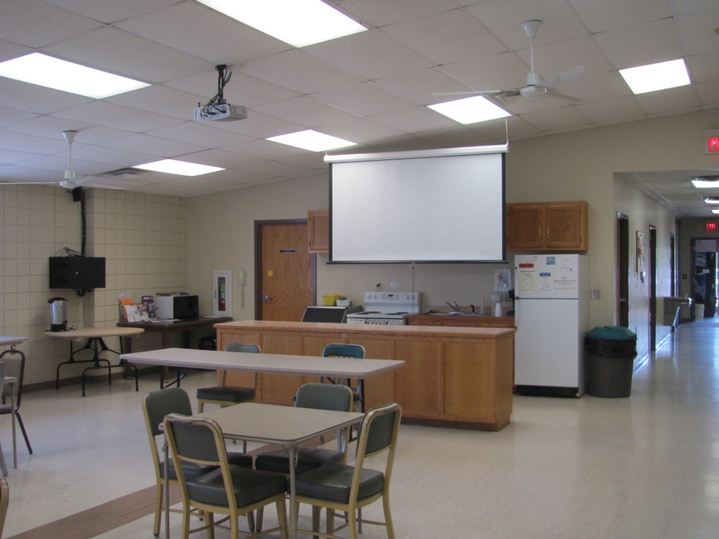 Additionally, senior meals are prepared and delivered from the attached kitchen facility (not part of the rental facilities). Senior Lunches are also served in this part of the facility Monday through Friday. Otherwise this area is available as a meeting space.